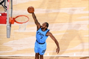 莱昂纳德上半场出战21分钟,9投7中,三分3中2,罚球1中1砍下17分4篮板4助攻2抢断,正负值+12。