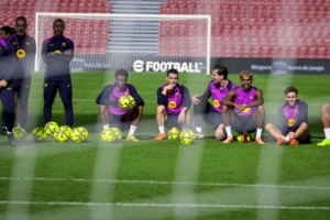 世体:巴萨昨日重返诺坎普公开训练,球员们及教练组合影留念