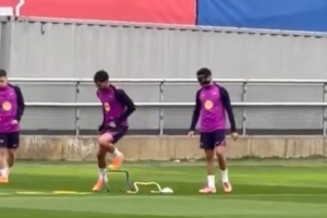 记者:埃里克-加西亚佩戴面具训练,霍安-加西亚国际比赛日后回归