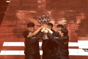 主持人余霜:恭喜T1 第五局的T1太强大了!三连冠啊!