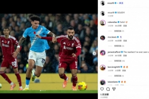 打出信心了!曼城左后卫奥赖利社媒晒对位萨拉赫照:硬!