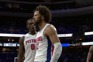 大将之风!康宁汉姆预判包夹抢冲内线 高难度转身跳投命中关键2分