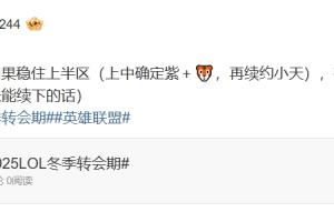 体育资讯11月12日讯 近日,前职业教练朱开在直播时透露转会消息:大眼睛(WBG)吗?大眼睛中路是虎,上路是麒麟的上路(Zika),其他的位置还没定,瞎子(Tian)我不太清楚,佐伊(Scout)也不知道,他今年表现挺麻烦的。