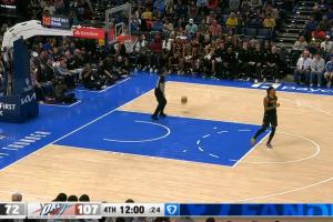 威少跳起传球砸到布劳恩脚背 约基奇&穆雷等四人齐齐摊手