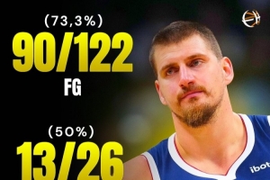 过去八场比赛约老师的高效命中率!命中率73.2%/三分50%/罚球85%