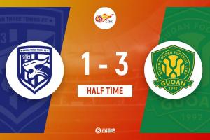 上半场比赛结束,武汉三镇1-3北京国安。