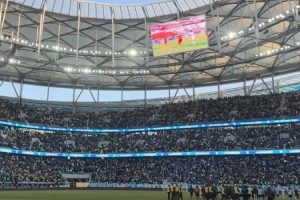 体育资讯4月16日讯 上轮大连英博主场1-1战平津门虎的比赛结束后,梭鱼湾现场上演了世界足坛都难得一见的6万人大合唱。