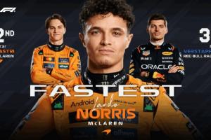 体育资讯4月19日讯 2025F1沙特大奖赛二练,诺里斯以1:28.267秒拿下晚间练习赛的头名,队友皮亚斯特里落后0.163秒紧随其后。维斯塔潘落后0.28秒,排在第三。勒克莱尔第四。