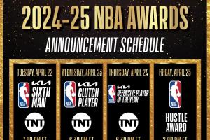 体育资讯04月22日讯 NBA官方宣布,本周联盟将在TNT公布年度最佳第六人奖、年度最佳关键球员奖、年度最佳防守球员奖和年度最佳拼搏奖的得主。