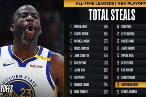 据统计,追梦生涯季后赛抢断数来到248次,超越丹尼斯-约翰逊排名NBA历史第19位。在他身前是莱昂纳德的255次。