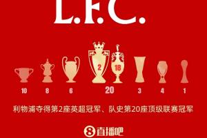 利物浦共20次夺得英格兰顶级联赛冠军,追平曼联的20次夺冠并列第一。