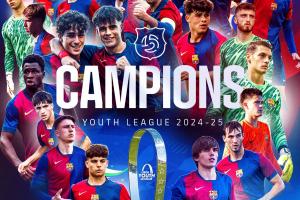 本赛季,巴萨U19青年队收获满满,他们夺得了青年国王杯、青年联赛、青年欧冠的三冠王。