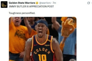 赛后,勇士官推晒照夸赞巴特勒:“这是巴特勒三世的感谢贴,他是韧性的化身。”