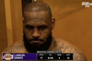 体育资讯3月28日讯 今日,湖人117-119客场不敌公牛。赛后,湖人前锋詹姆斯接受了采访。