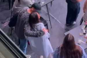 在场边,鲁本迪亚斯搂着女友,还亲吻了女友的脖颈。