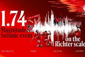 在利物浦大学的帮助下,球队在在L4的主看台上安装了一个地震仪,以纪念这一历史性时刻。地震仪记录了体育场内60415名观众的庆祝激烈程度。