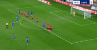 比赛第69分钟,申花前场任意球机会,路易斯与队友商量后选择直接打门打向近角,皮球击中右侧立柱后弹出。