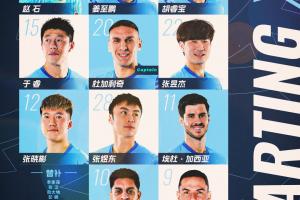 4-姜至鹏 5-胡睿宝 9-德·列昂索 10-萨卡里亚 11-埃杜 12-张晓彬 14-赵石(GK) 15-于睿 20-杜加利奇(C) 22-张昱杰 28-张煜东