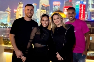 今日国安球员塞尔吉尼奥的妻子更新社媒,晒出赛后小两口和海港前锋莱昂纳多夫妻一同夜游上海的照片。