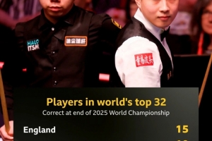 体育资讯5月6日讯 数据显示,10名中国斯诺克选手将在下赛季初排名前32,仅次于英格兰的15人。