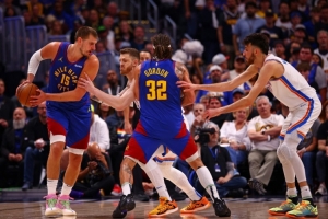 西部半决赛第4场,掘金主场87-92不敌雷霆,大比分战成2-2。约基奇27分13篮板3助攻4抢断,阿隆·戈登15分16篮板6助攻,贾马尔·穆雷和布劳恩分别有17分入账。与快船的抢7决胜,再加上半决赛已经进行的4场比赛,掘金4个星期出战了11场比赛,与雷霆的第4战是掘金5月以来的第6场比赛,球员们的体能接近耗尽。对阵雷霆的4场比赛中除了脆败的第2场,约基奇在其他3场比赛的出场时间均在42分钟以上。高强度的消耗让塞尔维亚人失去了手感,主场的两场比赛命中率均没有超过32%。第5场天王山之战,掘金没有退路,唯有拼字当头。