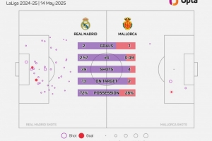 据Opta统计,皇马本场比赛射门39次,创造03-04赛季以来本队西甲主场射门次数纪录。