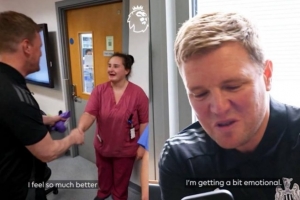 体育资讯5月15日讯 纽卡主帅埃迪豪此前肺炎紧急入院,后经纽卡斯尔皇家维多利亚医院救治,近期才完全康复。据纽卡斯尔博客网报道,日前,埃迪豪与纽卡前门将谢伊-吉文共同探访纽卡斯尔皇家维多利亚医院,向治疗团队表达感激并赠送礼物。
