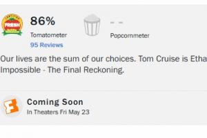 体育资讯05月16日讯 《碟中谍8》海外口碑解禁,M站媒体均分71分,烂番茄新鲜度86%。