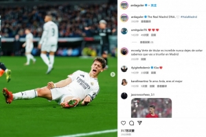 居勒尔也在赛后通过社媒晒出自己的庆祝照并配文:“皇马DNA!”