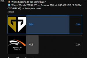 LoL官方发布淘汰赛预测投票:认为GEN获胜的占比78%