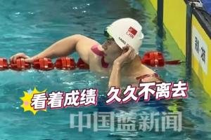 中国蓝新闻报道,比赛结束后,孙杨在泳池内看着赛果久久不忍离去。
