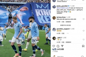 体育资讯5月21日讯 德布劳内在伊蒂哈德进行了盛大告别,格瓦迪奥尔更新社交媒体向这位曼城传奇深情告别。