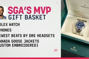名记Shams在节目中补充表示,亚历山大为感谢队友们对自己夺得MVP过程中的支持,为每位队友送上了价值超过1万美元的豪华礼篮,具体包括: