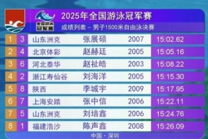 体育资讯5月24日讯 在刚刚结束的全国游泳冠军赛男子1500米自由泳决赛中,名将张展硕夺冠。