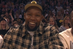 太阳球星杜兰特现身观战,这是他三天内观战的第二场火花的比赛。