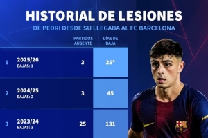 再次受伤!佩德里近5个赛季受伤休战12次,缺席91场比赛、514天