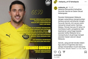 公告写道:“欢迎加尔塞斯正式成为马来西亚国家队的一员!这名25岁的后卫拥有非常出色的能力,能够给球队带来足够的经验和领导力,他将进一步强化马来西亚国家队的实力!”