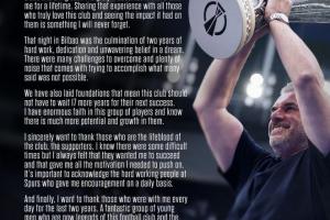 最后,我想感谢过去两年朝夕相处的伙伴们 :这群如今已成为俱乐部传奇的杰出年轻人,以及始终坚信我们能创造非凡成就的卓越教练团队。