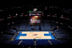 雷霆官方晒出了Paycom中心球馆的漂亮图片并写道:“明天的舞台已准备就绪。”