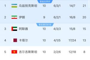 体育资讯06月10日讯 北京时间21:45,世预赛亚洲区第三阶段A组两场收官战,乌兹别克斯坦3-0战胜卡塔尔,吉尔吉斯斯坦1-1阿联酋。