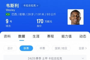 今年28岁的韦斯利身高1.91米,体重93公斤,属于典型的高中锋,在其职业生涯当中还踢过前腰,韦斯利曾在维拉、布鲁日、斯托克城、莱万特以及巴西国际效力,在前场有较好的冲击力。