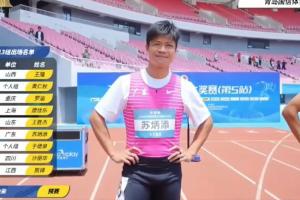 体育资讯06月18日讯 2025全国田径大奖赛青岛站,男子百米预赛,苏炳添参赛。