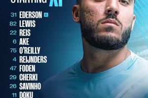 曼城替补:18-奥尔特加、3-迪亚斯、5-斯通斯、9-哈兰德、14-尼科-冈萨雷斯、16-罗德里、19-京多安、20-B席、21-阿特-努里、24-格瓦迪奥尔、25-阿坎吉、27-努内斯、30-埃切维里、45-胡桑诺夫、52-鲍勃
