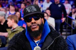 体育资讯04月02日讯 NBA常规赛,尼克斯vs76人,前NBA球员香波特来到麦迪逊广场花园观战。
