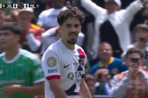 体育资讯06月24日讯 世俱杯巴黎vs西雅图海湾人第35分钟,维蒂尼亚禁区外插上劲射,皮球击中K77后变线入网。此时比分变为巴黎1-0领先。这球判定为K77的进球。