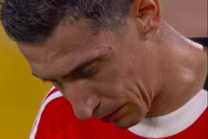 比赛加时赛,切尔西9分钟连入3球。随后镜头给到迪马利亚,迪马利亚无奈低头。
