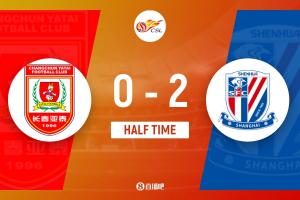 上半场比赛结束,上海申花客场暂时2-0领先长春亚泰。
