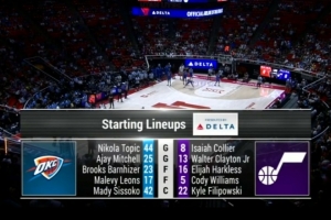 爵士的首发5人为科利尔、克莱顿、菲利波夫斯基、威廉姆斯、哈克莱斯。