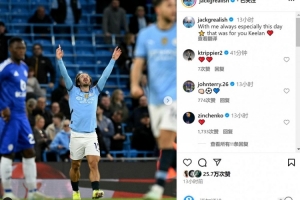 格拉利什在曼城对阵莱斯特城的英超第30轮比赛中破门,帮助曼城2-0取胜,他在社交媒体上晒出双手指天的照片,配文:“永远与我同在,特别是这一天⭐这是献给你的,基兰。”