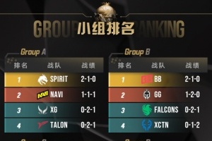 至此A组和B组的比赛全部结束,Spirit和BB以小组第一的成绩直接晋级第三阶段淘汰赛,NAVI和GG分别排在各自小组第二位,进入第二阶段晋级赛第二轮,其余四支战队XG、Talon、Falcons和XctN则进入第二阶段晋级赛首轮。